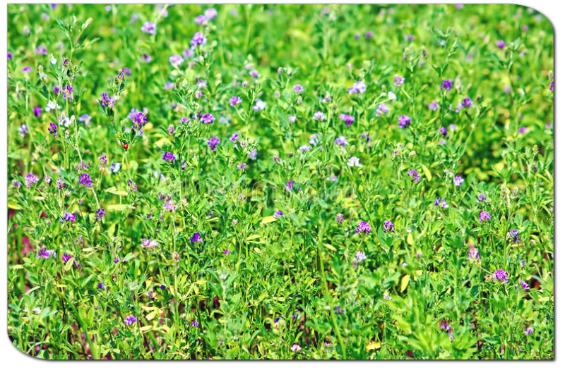 Obsah vody v čerstvé alfalfě činí asi 80%. Je velice bohatá na sacharidy, vápník, draslík, fosfor a hořčík. Jestliže není čerstvá alfalfa k sehnání, můžeme ji použít ve formě prášku do salátů a zeleninových šťáv, a to 1/4 kávové lžičky na jednu porci salátu nebo půl litru čerstvé šťávy.